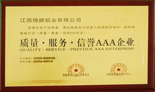 江西锦鹏铝业有限公司坐落于江西省南昌市安义凤凰山开发区,占地面积200亩,拥有员工700多人,高级技术管理人员300多人,交通便利,美丽富饶。公司在营业初便以高效、高质量的生产体系,通过ISO9001国际质量体系认证;是一家集合熔铸、挤压、氧化、电泳、喷涂于一体的大型综合性铝型材企业。公司铝材年产量达5万吨。为使公司适应市场新一轮的挑战。公司以先进、完善的产品质量检测监控系统,建立完善的ISO9001质量认证体系,以优良的产品和共赢的服务得到行业人士极高的肯定。2009年被“中国名牌产品培育委员会”和“中国名牌产品统计中心”联合授予“质量.服务.信益AAA企业”。并在同年获得“中国著名品牌”。在荣益和良好的口碑面前锦鹏铝业一贯以“质量第一、客户至上”的企业文化为宗旨,建立“产品质量抽查合格率100%、产品出厂合格率100%、客户满意100%的全面质量管理目标,专心技术先进锦鹏”铝材品牌